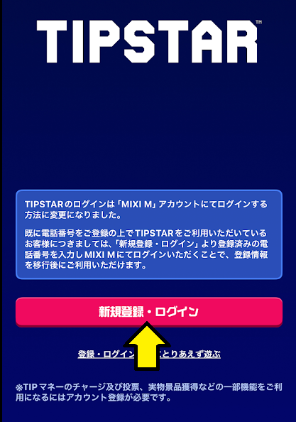 アプリのインストールができたら、画面中央のボタンからログインしてください。(会員登録がまだの人は、同じボタンから新規登録してください)